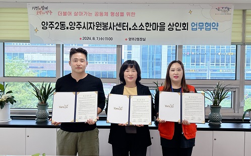 ¾çÁֽà ¾çÁÖ2µ¿(µ¿Àå À̰æ¶õ)ÀÌ Áö³ 7ÀÏ ¾çÁÖ½ÃÀÚ¿øºÀ»ç¼¾ÅÍ ¹× ¼Ò¼ÒÇÑ ¸¶À»»óÀÎȸ(ȸÀå ¾ç¼ö±Ù)¿Í ÇÔ²² ´õºÒ¾î »ì¾Æ°¡´Â °øµ¿Ã¼ Çü¼ºÀ̶ó´Â °øµ¿ ¸ñÇ¥·Î ¾÷¹«Çù¾àÀ» ü°áÇß´Ù°í ¹àÇû´Ù.