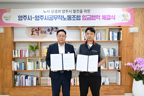 °¼öÇö ¾çÁÖ½ÃÀåÀÌ Áö³ 8ÀÏ ¿ÃÇØ °ø¹«Á÷ÀÇ °æÁ¦Àû ÁöÀ§ Çâ»óÀ» À§ÇØ °³ÃÖµÈ ‘2024³â °ø¹«Á÷ ÀÓ±ÝÇù»ó’ Çù¾à½Ä¿¡ Âü¼®Çϰí ÀÓ±Ý Çù¾àÀ» ü°áÇß´Ù.