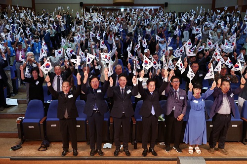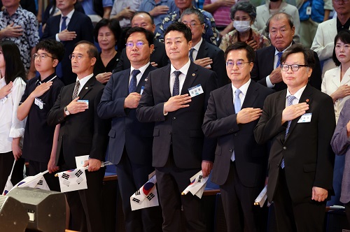 ±èÁø°æ °æ±âµµÀÇȸ ÀÇÀå(´õ¹ÎÁÖ, ½ÃÈï3)ÀÌ 15ÀÏ °æ±âµµ°æÁ¦°úÇÐÁøÈï¿ø¿¡¼ °³ÃÖµÈ Á¦79Áֳ⠱¤º¹Àý °æÃà½Ä ‘±â¾ï_¹Ì·¡¸¦ ÀÕ´Ù’¿¡ Âü¼®Çß´Ù.