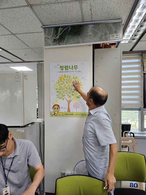 Æò¼Ò °øÁ¤Çϰí û·ÅÇÑ °øÁ÷¹®È°¡ Á¶¼ºµÉ ¼ö ÀÖµµ·Ï ¸ð¹üÀ» º¸ÀÎ Á¤½Â³² °úÀåÀº °øÁ÷ÀÚÀÇ ³ôÀº Ã¥ÀÓ°¨À» °Á¶ÇÏ¸ç ‘³»°¡ ¸ÕÀú ½ÇõÇϴ û·ÅÇÑ ¾çÁÖ½Ã!’¶ó´Â ¸Þ½ÃÁö¸¦ ºÎÂøÇß´Ù.