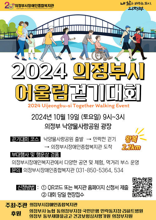 ÀÇÁ¤ºÎ½ÃÀå¾ÖÀÎÁ¾ÇÕº¹Áö°ü(°üÀå ¼Û°æÁÖ)Àº °³°ü 20ÁÖ³âÀ» ±â³äÇÏ¿© Àå¾ÖÀÎ »ýȰüÀ° Ȱ¼ºÈ¿Í Àå¾ÖÀνݳ¼±À» À§ÇØ ‘2024 ÀÇÁ¤ºÎ½Ã ¾î¿ï¸² °È±â´ëȸ’¸¦ ¿À´Â 10¿ù 19ÀÏ(Åä) 09:00~15:00 ÀÇÁ¤ºÎ ³«¾ç¹°»ç¶û°ø¿ø ¹× ÀÇÁ¤ºÎ½ÃÀå¾ÖÀÎÁ¾ÇÕº¹Áö°ü¿¡¼ °³ÃÖÇÑ´Ù.