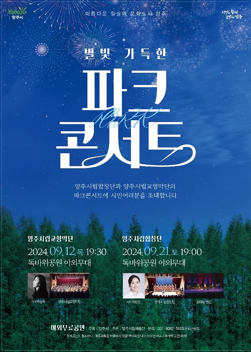 ¾çÁÖ½Ã(½ÃÀå °¼öÇö)´Â 9¿ù 12Àϰú 9¿ù 21ÀÏ, ÀÌÆ²°£ µ¶¹ÙÀ§°ø¿ø ¾ß¿Ü¹«´ë¿¡¼ 2024³â ¾çÁֽø³¿¹¼ú´Ü 'º°ºû °¡µæÇÑ ÆÄÅ©ÄܼƮ'¸¦ °³ÃÖÇÑ´Ù.
