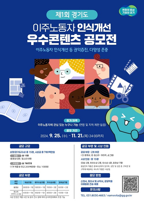 Ç㿵±æ °æ±âµµ À̹λçȸÁ¤Ã¥°úÀåÀº “À̹ø °ø¸ðÀüÀ» ÅëÇØ ÀÌÁֳ뵿ÀÚ ±ÇÀÍ ÁõÁø¿¡ ´ëÇÑ µµ¹ÎÀÇ °ü½ÉÀ» ³ôÀÌ°í »óÈ£ Á¸ÁßÇÏ´Â ¹®È°¡ È®»êµÇ±æ ¹Ù¶õ´Ù”°í ¸»Çß´Ù.