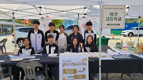 À̹ø Ȱµ¿Àº ¾çÁÖ°íµîÇб³¿¡¼ ³»½Ç ÀÖ°Ô ¿î¿µÇÏ´Â À¶ÇÕ ÇÁ·ÎÁ§Æ®Çü ‘Çб³ÀÚÀ²°úÁ¤’ Áß [ÇÑ±Û µðÀÚÀÎ ÇÁ·ÎÁ§Æ®](Áöµµ±³»ç À¯Á¤Èñ, ¹Ú¼Ò¿µ)¿¡ Âü¿©ÇÑ ÇлýµéÀ» Áß½ÉÀ¸·Î ‘Çѱ۳¯’ ÁÖ°£¿¡ ¿¸®´Â ±â¹ö¸¶ÄÏ¿¡¼ Á÷Á¢ ÆÇ¸Å ºÎ½º¸¦ ¿î¿µÇÏ¿©, ÇѱÛÀÇ ¼ÒÁßÇÔ°ú ¾Æ¸§´Ù¿òÀ» ¾Ë¸²°ú µ¿½Ã¿¡ ÆÇ¸Å ¹°Ç°ÀÇ ¼öÀͱÝÀ» Ãë¾à°èÃþ Áö¿ø¿¡ ±âºÎÇÏ¿© °øµ¿Ã¼ ÀÇ½Ä ¹× ±â¾÷°¡Á¤½ÅÀ» ÇÔ¾çÇϰí ÀüÆÄÇϰíÀÚ ÇÏ´Â ¸ñÀûÀ¸·Î ÁøÇàÇß´Ù.