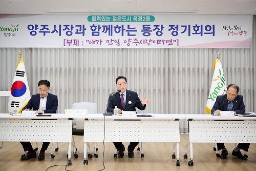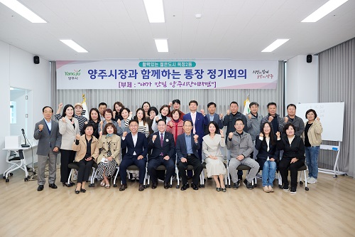 10¿ù 22ÀÏ ½Ã¿¡ µû¸£¸é ¾çÁֽô Áö³ 21ÀÏ ¿ÁÁ¤2µ¿(µ¿Àå ÀÌÀ±±Ô) ȸÀǽǿ¡¼ °¼öÇö ¾çÁÖ½ÃÀå, ÀÌÀ±±Ô ¿ÁÁ¤2µ¿Àå, ¿ÁÁ¤2µ¿ ÅëÀå 30¸íÀÌ Âü¼®ÇÑ °¡¿îµ¥ ‘ÅëÀå Á¤±âȸÀÇ’¸¦ °³ÃÖÇß´Ù°í ¹àÇû´Ù.