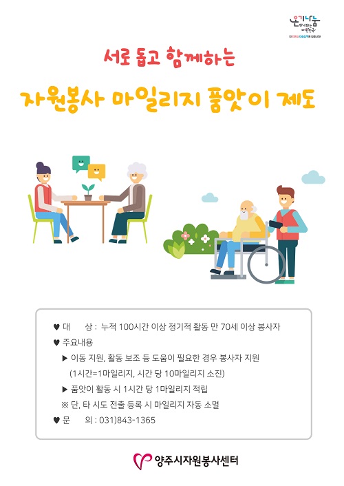 ¾çÁÖ½ÃÀÚ¿øºÀ»ç¼¾ÅͰ¡ ÀÏ¹Ý ½Ã¹ÎµéÀÇ ÀÚ¿øºÀ»çȰµ¿¿¡ ´ëÇÑ °ü½ÉÀ» ³ôÀ̰í Âü¿© ±âȸ Á¦°øÀ» À§ÇØ ÀÚ¿øºÀ»ç ‘¸¶Àϸ®Áö ǰ¾ÑÀÌ Á¦µµ’¸¦ ½ÃÇàÇÑ´Ù°í 23ÀÏ ¹àÇû´Ù.