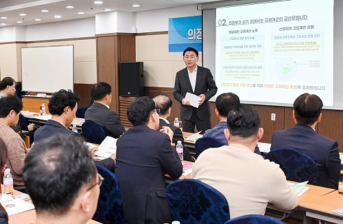 ±èµ¿±Ù ½ÃÀåÀº ‘ÀÇÁ¤ºÎ½Ã ±â¾÷ Á¤Ã¥ ÇöȲ ¹× ÃßÁø¹æÇâ’À» ÁÖÁ¦·Î ¹ßÇ¥Çϰí, ±â¾÷Àεé·ÎºÎÅÍ °ü·Ã ÀǰßÀ» µéÀ¸¸ç ¼ÒÅëÇß´Ù.