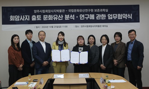 ¾çÁÖ½Ã(½ÃÀå °¼öÇö)´Â 10¿ù 25ÀÏ ¾çÁֽø³È¸¾Ï»çÁö¹Ú¹°°ü(°üÀå È«¹Ì¿µ)°ú ±¹°¡À¯»êû ±¹¸³¹®ÈÀ¯»ê¿¬±¸¿ø(¿øÀå ÀÓÁ¾´ö)ÀÌ ¾÷¹« ¾àÁ¤À» ü°áÇß´Ù°í ¹àÇû´Ù.