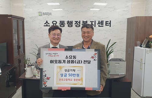 µ¿µÎõ½Ãû Àü°î°íµîÇб³ µ¿¹®È¸(ȸÀå ¾ÈÀüÃѰý°úÀå ÃÖÇö±Ô)´Â 24ÀÏ, Áö¿ª ³» ¾î·Á¿î ÀÌ¿ôµé¿¡°Ô Àü´ÞÇØ ´Þ¶ó¸ç ¼Ò¿äµ¿ ÇàÁ¤º¹Áö¼¾ÅÍ¿¡ ¼º±Ý 50¸¸¿øÀ» ±âºÎÇß´Ù.