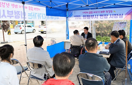 ±èµ¿±Ù ÀÇÁ¤ºÎ½ÃÀåÀÌ 10¿ù 25ÀÏ ¼Û»ê2µ¿Áֹμ¾ÅÍ¿¡¼ ‘ÇöÀå½ÃÀå½Ç’À» ¿°í ½Ã¹Îµé°ú ¼ÒÅëÇÏ´Â ½Ã°£À» °¡Á³´Ù.