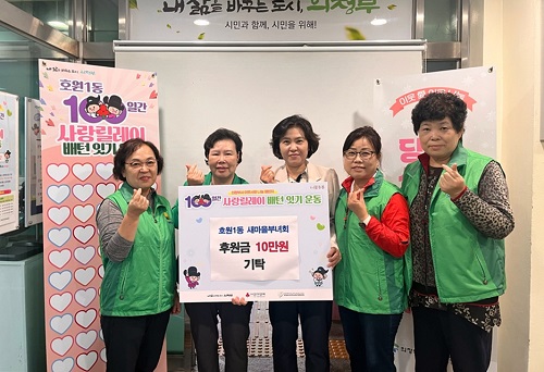 È£¿ø1µ¿ »õ¸¶À»ºÎ³àȸ´Â ¼º±Ý 10¸¸ ¿øÀ» ±âŹÇßÀ¸¸ç ȸ¿øµéÀÌ º°µµ·Î ¼º±ÝÀ» ±âºÎÇÏ¸ç ¾î·Á¿î ÀÌ¿ôÀ» À§ÇØ ½á´Þ¶ó°í ÀüÇß´Ù.