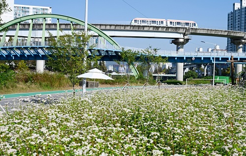 À۳⿡ ÀÌ¾î ¿ÃÇØµµ ÃÊ¿©¸§ Áß¶ûõ Àεµ±³¿¡¼ È£¾Ï±³ ¾à 1km ±¸°£¿¡´Â Ǫ¸¥ ûº¸¸®±æÀ» Á¶¼ºÇß´Ù. 10¿ù¿¡´Â ³ô¾ÆÁø Çϴðú ½Ã¿øÇØÁø ³¯¾¾¸¦ Áñ±â·Á ÇÏõÀ» ã´Â ÁֹεéÀ» À§ÇØ Àεµ±³ºÎÅÍ Çϼöó¸®Àå ¹æ¸éÀÇ ÇÏõ±æÀ» µû¶ó ¼ö¹ém¿¡ °ÉÃÄ »õÇÏ¾á ¸Þ¹Ð²É¹çÀ» ¸¶·ÃÇÏ´Â µî ½Ã¹ÎµéÀÌ »ç°èÀý ³»³» Áß¶ûõº¯À» °ÉÀ¸¸ç Ä£¼÷ÇÏ°Ô ÀÚ¿¬À» ´À³¥ ¼ö ÀÖµµ·Ï Çß´Ù.