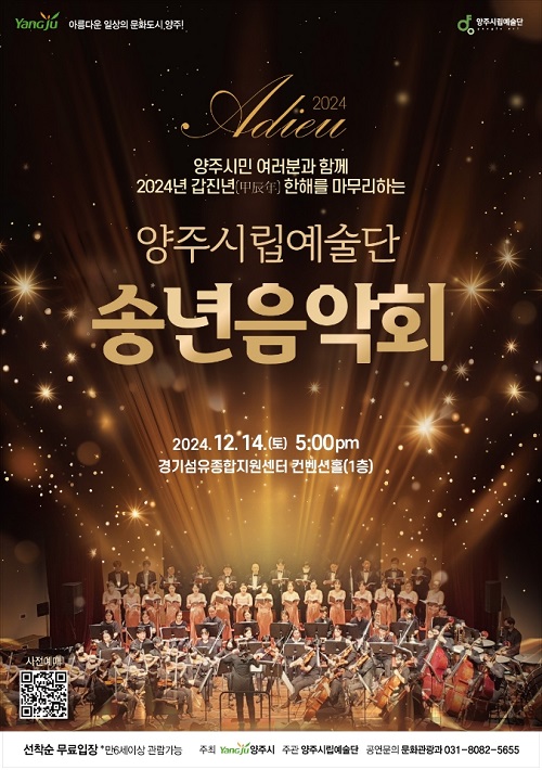 ¾çÁÖ½Ã(½ÃÀå °¼öÇö)°¡ ¿À´Â 12¿ù 14ÀÏ °æ±â¼¶À¯Á¾ÇÕÁö¿ø¼¾ÅÍ 1Ãþ ÄÁº¥¼ÇȦ¿¡¼ 2024³â ¾çÁֽø³¿¹¼ú´Ü ¼Û³â À½¾Çȸ¸¦ °³ÃÖÇÑ´Ù.