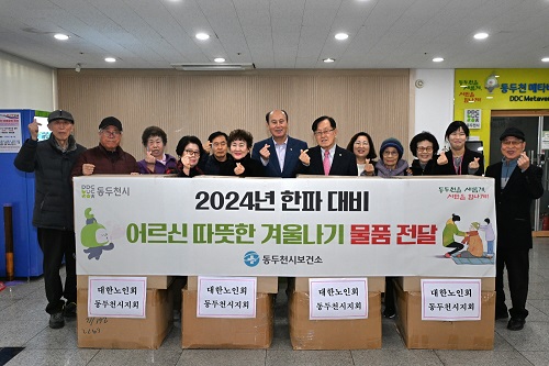 µ¿µÎõ½Ã(½ÃÀå ¹ÚÇü´ö) º¸°Ç¼Ò´Â 4ÀÏ ´ëÇѳëÀÎȸ µ¿µÎõ½ÃÁöȸ¸¦ ¹æ¹®ÇØ ¾î¸£½ÅµéÀÇ °Ç°ÇÑ °Ü¿ïÀ» º¸³»±â À§ÇÑ ÇÑÆÄ ´ëºñ ¹°Ç°À» Àü´ÞÇß´Ù.