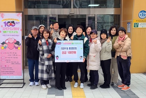 ÀÇÁ¤ºÎ½Ã ÀÇÁ¤ºÎ1µ¿Áֹμ¾ÅÍ(µ¿Àå ±è¿µ¸®)´Â 12¿ù 5ÀÏ ÀÇÁ¤ºÎ1µ¿ ÅëÀåÇùÀÇȸ(ȸÀå ±Ç¼º¾Ö)°¡ ¼º±Ý 100¸¸ ¿øÀ» ±âºÎÇÏ¸ç ‘100Àϰ£ »ç¶û¸±·¹ÀÌ ¹èÅÏ ÀձⒿ¡ µ¿ÂüÇß´Ù°í ¹àÇû´Ù.