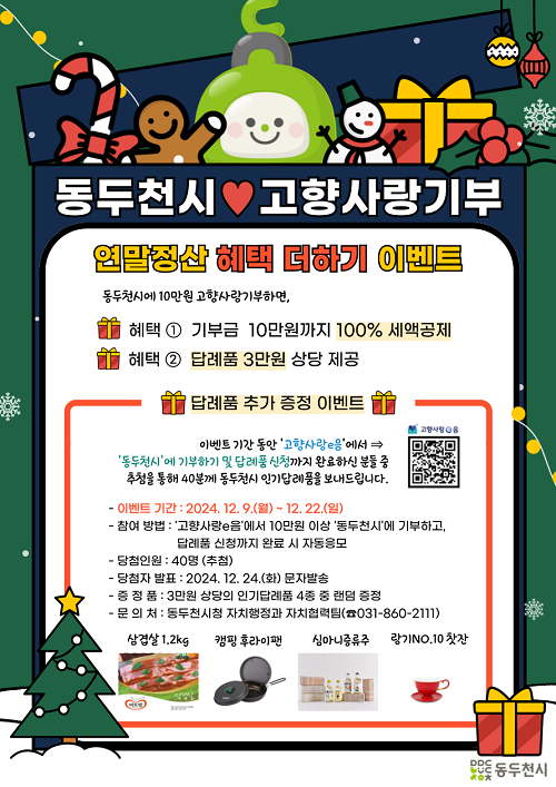 µ¿µÎõ½Ã(½ÃÀå ¹ÚÇü´ö)´Â ¿À´Â 12¿ù 9ÀϺÎÅÍ 22ÀϱîÁö 2ÁÖ µ¿¾È '°íÇâ»ç¶û±âºÎ ¿¬¸»Á¤»ê ÇýÅà ´õÇϱâ' Çà»ç(À̺¥Æ®)¸¦ ½Ç½ÃÇÑ´Ù°í ¹àÇû´Ù.