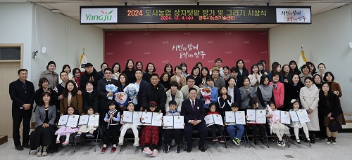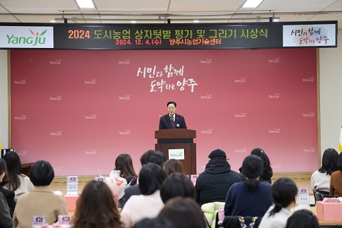 ¾çÁÖ½Ã(½ÃÀå °¼öÇö)´Â ³ó¾÷±â¼ú¼¾ÅÍ ´ëȸÀǽǿ¡¼ ¼ö»óÀÚ ¹× °¡Á· 60¿©¸íÀÌ Âü¼®ÇÑ °¡¿îµ¥ ‘2024³â µµ½Ã³ó¾÷ »óÀÚÅÔ¹ç »ç¾÷Æò°¡ ¹× ¸ÀÀÖ´Â ÅÔ¹ç ±×¸®±â ´ëȸ’ ½Ã»ó½ÄÀ» °³ÃÖÇß´Ù°í 6ÀÏ ¹àÇû´Ù.