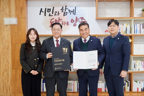ÀÌÈï±Ô »çÀåÀº “¾çÁÖ½Ã¿Í ¾çÁÖ½ÃÀÇȸÀÇ Àû±ØÀûÀÎ Áö¿øÀ¸·Î ±Ý³â ÀÎÁõ±â¾÷ Áß Áö¹æ°ø±â¾÷À¸·Î´Â À¯ÀÏÇÏ°Ô ‘°Ç°Ä£È±â¾÷’ ÀÎÁõÀ» ȹµæÇÒ ¼ö ÀÖ¾ú´Ù”¶ó¸ç “¾ÕÀ¸·Îµµ ¾çÁÖ½Ã¿Í Çù·ÂÇÏ¿© ÀÓÁ÷¿ø°ú ½Ã¹ÎµéÀÇ °Ç°ÁõÁø°ú °Ç°Ä£È¹®È È®»êÀ» À§ÇØ »çȸÀû Ã¥ÀÓÀ» ´ÙÇϰڴٔ¶ó°í ¸»Çß´Ù.