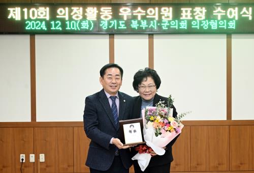 ÀÇÁ¤ºÎ½ÃÀÇȸ ÃÖÁ¤Èñ ÀÇ¿øÀÌ 12¿ù10ÀÏ ±¸¸®½ÃÀÇȸ¿¡¼ ¿¸° ‘Á¦10ȸ ÀÇÁ¤È°µ¿ ¿ì¼öÀÇ¿ø ǥâ ¼ö¿©½Ä’¿¡¼ ‘ÀÇÁ¤¿¬±¸¹ßÀü ºÎ¹®’ ǥâÀ» ¼ö»óÇß´Ù.