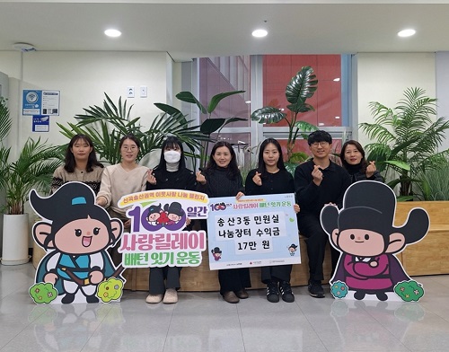 ÀÇÁ¤ºÎ½Ã ¼Û»ê3µ¿ÇàÁ¤º¹Áö¼¾ÅÍ(±¹Àå ÀÌ¿µÀç)´Â ¹Î¿ø½Ç ³»¿¡¼ ‘ÀÌ¿ôµ½±â ³ª´®ÀåÅÍ’¸¦ °³ÃÖÇØ ¹ß»ýÇÑ ¼öÀÍ±Ý 17¸¸ ¿øÀ» ‘100Àϰ£ »ç¶û¸±·¹ÀÌ ¹èÅÏ Àձ⒠ⱸ¿¡ ±âºÎÇß´Ù°í 13ÀÏ ¹àÇû´Ù.