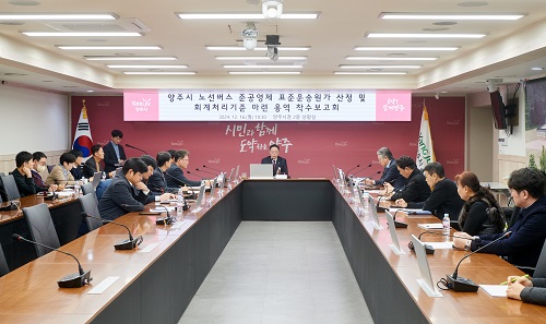 ¾çÁÖ½Ã(½ÃÀå °¼öÇö)°¡ 16ÀÏ ¿ÀÀü ½Ãû »óȲ½Ç¿¡¼ ‘³ë¼±¹ö½º Áذø¿µÁ¦ Ç¥ÁØ¿î¼Û¿ø°¡ »êÁ¤ ¹× ȸ°è ó¸® ±âÁØ ¸¶·Ã ¿ë¿ª Âø¼öº¸°íȸ’¸¦ °³ÃÖÇß´Ù°í ¹àÇû´Ù.