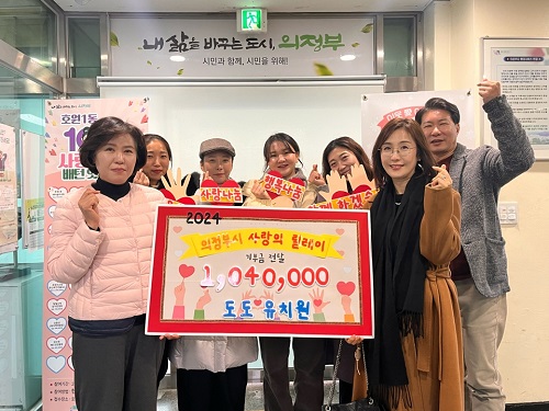 ÀÇÁ¤ºÎ½Ã È£¿ø1µ¿Áֹμ¾ÅÍ(µ¿Àå °í¿¬Èñ)´Â 12¿ù 18ÀÏ µµµµÀ¯Ä¡¿ø(ÀÌ»çÀå ÇÑ¿ëÈ£)ÀÌ ¼º±Ý 104¸¸ ¿øÀ» Àü´ÞÇÏ¸ç ‘100Àϰ£ »ç¶û¸±·¹ÀÌ ¹èÅÏ ÀձⒿ¡ µ¿ÂüÇß´Ù°í ¹àÇû´Ù.