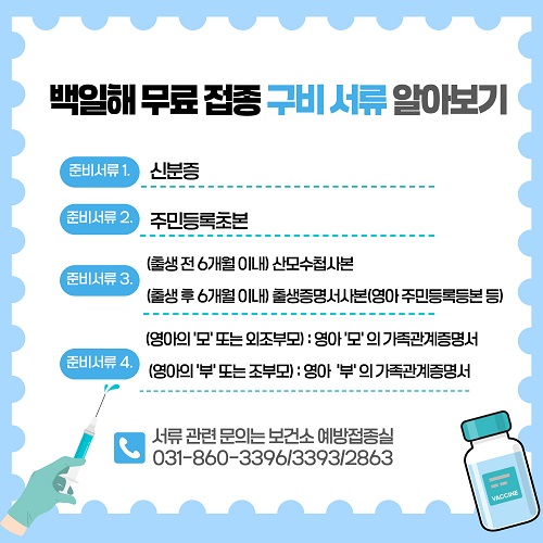 ÇÑÆí, ¹éÀÏÇØ ¿¹¹æÁ¢Á¾ ¹× ±¸ºñ ¼·ù¿Í °ü·ÃÇØ ±Ã±ÝÇÑ »çÇ×Àº µ¿µÎõ½Ã º¸°Ç¼Ò ¿¹¹æÁ¢Á¾½Ç(031-860-3396, 3393, 2863)·Î ¹®ÀÇÇÏ¸é µÈ´Ù.