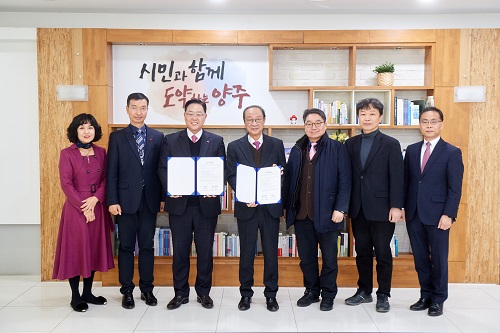 ¾çÁÖ½Ã(½ÃÀå °¼öÇö)°¡ 15ÀÏ ½Ãû 2Ãþ Áý¹«½Ç¿¡¼ °¼öÇö ¾çÁÖ½ÃÀåÀ» ºñ·ÔÇÑ ÃÖ¼ºÇØ µ¿¾ç´ëÇб³ ÃÑÀå µî °ü°èÀÚµéÀÌ Âü¼®ÇÑ °¡¿îµ¥ ‘¾çÁÖ½Ã-µ¿¾ç´ëÇб³ °ü·ÇÐ Çù·Â Çù¾à’À» ü°áÇß´Ù°í ¹àÇû´Ù.