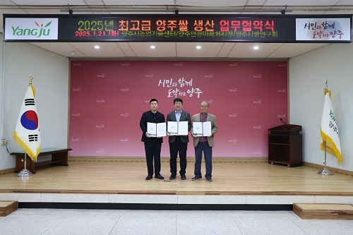 ¾çÁÖ½Ã(°¼öÇö ½ÃÀå)°¡ ÃÖ±Ù ÃÖ°í±Þ ¾çÁÖ ½ÒÀÇ ¾ÈÁ¤Àû »ý»êÀ» À§ÇØ ‘¾çÁֽóó¾÷±â¼ú¼¾ÅÍ’, ‘¾çÁÖ¿¬ÇÕ³óÇù¹Ì°îÁ¾ÇÕó¸®Àå(ÀåÀå ±è¼ºÁÖ)’, ‘¾çÁֽýҿ¬±¸È¸(ȸÀå ¹é¿õÇö)’°¡ ‘3ÀÚ °£ ¾÷¹«Çù¾à’À» ü°áÇß´Ù°í 23ÀÏ ¹àÇû´Ù.