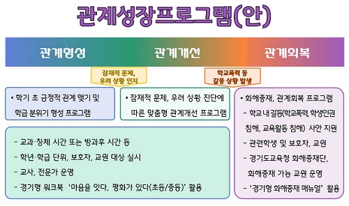 °æ±âµµ±³À°Ã»(±³À°°¨ ÀÓÅÂÈñ)ÀÌ ‘°æ±âÇü °ü°è¼ºÀå ÇÁ·Î±×·¥’À» ¿î¿µÇØ Çб³ ÇöÀåÀÇ ¸ÂÃãÇü ÈÇØÁßÀ縦 °ÈÇÑ´Ù. Çб³Æø·ÂÁ¦·Î¼¾ÅÍ¿Í ¿¬°èÇØ Çб³ ³» °¥µî »ç¾È Á¶±â °³ÀÔ, °¥µî ½ÉÈ ¹æÁö, °¥µî Á¤µµ ¹× À¯Çü¿¡ µû¸¥ °ü°è¼ºÀå¿¡ ÁýÁßÇÑ´Ù.