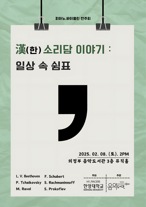 À̹ø °ø¿¬Àº 2025³â »õÇØ¸¦ ¸Â´Â ‘Èñ¸Á’°ú ‘Áñ°Å¿ò’À» ´ã¾Æ 2¿ù 8ÀÏ ¿ÀÈÄ 2½Ã, À½¾Çµµ¼°ü 3Ãþ ¹ÂÁ÷Ȧ¿¡¼ ÆîÃÄÁú ¿¹Á¤ÀÌ´Ù. ÇǾƳë¿Í ¹ÙÀ̿ø° ¼±À²À» ÅëÇØ º£Å亥, ½´º£¸£Æ®, Â÷ÀÌÄÚÇÁ½ºÅ° µî ´ëÁß¿¡°Ô Ä£¼÷ÇÑ ¿¬ÁÖ°îÀ» °¨»óÇÒ ¼ö ÀÖ´Ù.