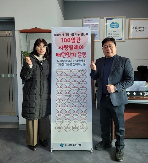 ÀÇÁ¤ºÎ½Ã Àڱݵ¿Áֹμ¾ÅÍ(µ¿Àå ±ÇÁ¾¿ø)´Â ÀÌ¿ô °£ µû¶æÇÑ »ç¶ûÀ» ÀüÇÏ°í ³ª´® ¹®È¿¡ Àû±Ø Âü¿©ÇØ ¾î·Á¿î ÀÌ¿ôÀ» À§ÇÑ ÈÄ¿øÀ» À̾°¡´Â ‘100Àϰ£ »ç¶û¸±·¹ÀÌ ¹èÅÏ ÀձⒸ¦ ¼ºÈ²¸®¿¡ Á¾·áÇß´Ù.