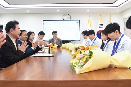 ÀÇÁ¤ºÎ½Ã(½ÃÀå ±èµ¿±Ù)´Â 2¿ù 13ÀÏ 2025 ÇϾóºó µ¿°è ¾Æ½Ã¾È°ÔÀÓ¿¡¼ ¿ì¼öÇÑ ¼ºÀûÀ» °ÅµÐ ÀÇÁ¤ºÎ½Ãû Á÷Àå¿îµ¿°æ±âºÎ ºù»óÆÀ ¼Ò¼Ó ±¹°¡´ëÇ¥ ±è¹Î¼±, Á¤Àç¿ø, Á¶»óÇõ, ¾çÈ£ÁØ ¼±¼ö¸¦ ÃÊÃ»ÇØ °Ý·ÁÇÏ´Â ÀÚ¸®¸¦ °¡Á³´Ù.