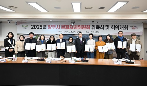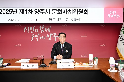 °¼öÇö ¾çÁÖ½ÃÀåÀÌ ÃÖ±Ù ½Ãû »óȲ½Ç¿¡¼ ¿¸° ‘2025³â Á¦1±â ¾çÁֽà ¹®ÈÀÚÄ¡À§¿øÈ¸ À§Ã˽Ē¿¡ Âü¼®ÇØ ¿ÃÇØ Áö¿ª ¹®È ÁøÈïÀ» À§ÇØ Èû¾µ À§¿øµéÀ» °Ý·ÁÇß´Ù.