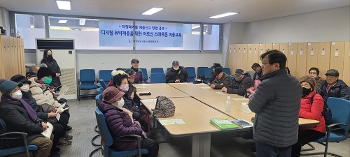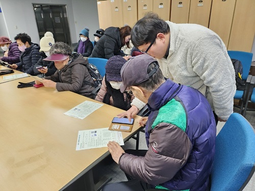 ÀÇÁ¤ºÎµµ½Ã°ø»ç(»çÀå ±è¿ë¼®)´Â Áö³ 2¿ù 13Àϰú 20ÀÏ, 2ȸ¿¡ °ÉÃÄ µðÁöÅÐ ±â±â¿¡ Àͼ÷ÇÏÁö ¾ÊÀº ¾î¸£½ÅµéÀ» À§ÇØ ½º¸¶Æ®Æù ±âº» »ç¿ë¹ý ±³À°À» ÁøÇàÇß´Ù. À̹ø ±³À°¿¡¼´Â ½º¸¶Æ®ÆùÀÇ ÁÖ¿ä ±â´ÉÀ» ÀÍÈ÷°í, Á¤º¸ °Ë»ö ¹× ´Ù¿î·Îµå ¹æ¹ýÀ» ¹è¿ì´Â ÇÑÆí, ´ëÇüÆó±â¹° ½ºÆ¼Ä¿¸¦ ¸ð¹ÙÀÏ·Î °£ÆíÇÏ°Ô ±¸¸Å·½ÅûÇÏ´Â ¹æ¹ýÀ» ¾È³»Çß´Ù.