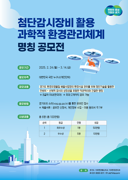 ÃÖ¿ì¼ö·Î ¼±Á¤µÈ ¸íĪÀº ȯ°æ¿À¿°¹°Áú ¹èÃâ»ç¾÷Àå °ü¸® µî ´Ù¾çÇÑ È«º¸ÀÚ·á¿¡µµ Ȱ¿ëÇÒ °èȹÀ̸ç, ÀÚ¼¼ÇÑ »çÇ×Àº °æ±âµµÀÇ ¼Ò¸®(vog.gg.go.kr)¿¡¼ È®ÀÎÇÒ ¼ö ÀÖ´Ù.