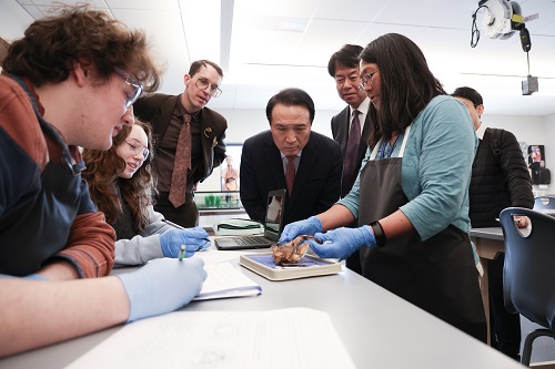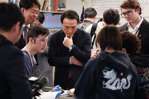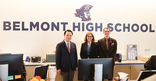 ÀÓÅÂÈñ °æ±âµµ±³À°°¨ÀÌ 27ÀÏ(ÇöÁö½Ã°£) ¹Ì±¹ ¸Å»çÃß¼¼Ã÷ÁÖ º§¸óÆ® °íµîÇб³¸¦ ¹æ¹®Çß´Ù.