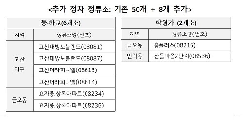 ½Ã´Â Çлý°ú ÇкθðÀÇ ¿äûÀ» ¹Ý¿µÇØ ±âÁ¸ 50°³ Á¤·ù¼Ò ¿Ü¿¡ 8°÷À» Ãß°¡·Î ÁöÁ¤Çß´Ù.