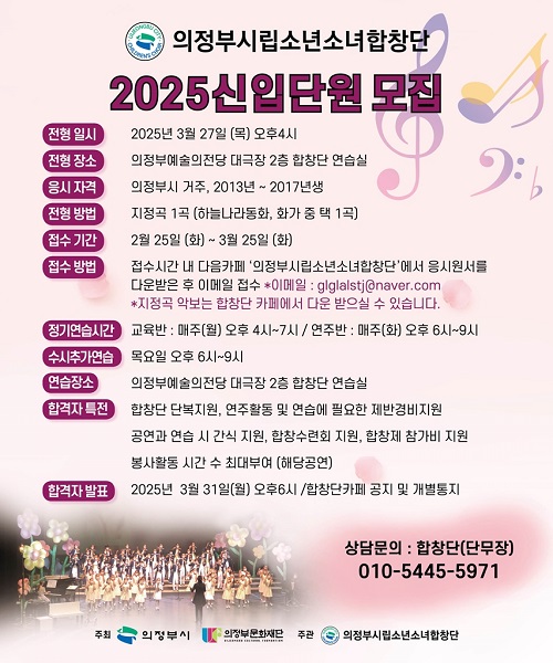 À̹ø ¸ðÁýÀº ÀÇÁ¤ºÎ¿¡ °ÅÁÖÇÏ´Â 2013~2017³â»ý û¼Ò³âÀ» ´ë»óÀ¸·Î Çϸç, À½¾Ç¿¡ ´ëÇÑ ¿Á¤ÀÌ ÀÖ°í Á¤±â ¿¬½À¿¡ ¼º½ÇÈ÷ Âü¿©ÇÒ ¼ö ÀÖ´Â ´©±¸³ª Áö¿øÇÒ ¼ö ÀÖ´Ù. ´ÙÀ½Ä«Æä ‘ÀÇÁ¤ºÎ½Ã¸³¼Ò³â¼Ò³àÇÕâ´Ü’¿¡¼ ÀÀ½Ã¿ø¼¸¦ ³»·Á¹Þ¾Æ ÀüÀÚ¿ìÆíÀ¸·Î Áö¿øÇÏ¸é µÈ´Ù.