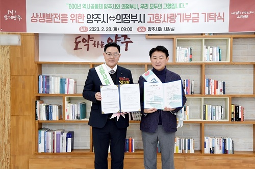 ÀÇÁ¤ºÎ½Ã(½ÃÀå ±èµ¿±Ù)¿Í ¾çÁÖ½Ã(½ÃÀå °¼öÇö) °øÁ÷ÀÚµéÀÌ Áö¿ª »ó»ý ¹ßÀüÀ» À§ÇØ 2³â ¿¬¼Ó »óÈ£ ±âºÎ¸¦ ½ÇõÇß´Ù.
