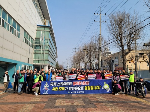 µ¿µÎõ½Ã º¸»êµ¿ ÇàÁ¤º¹Áö¼¾ÅÍ´Â 7ÀÏ º¸»ê¿ª ¾Õ ±¤Àå¿¡¼ Áö¿ª »çȸ´Üü¿Í Çù·ÂÇØ ±¹Á¦ ½ºÄÉÀÌÆ®Àå À¯Ä¡¸¦ À§ÇÑ Ä·ÆäÀÎÀ» ÁøÇàÇß´Ù.
