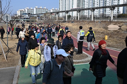 ½Ã¹ÎµéÀº °æ±âµµÃ»ºÏºÎû»ç¿ª Àα٠º®ÃµºÐ¼ö¿¡¼ Ãâ¹ßÇØ º½±â¿îÀÌ °¡µæÇÑ ÇÏõº¯À» µû¶ó ¾à 4.8kmÀÇ ÄÚ½º¸¦ ¸±·¹ÀÌ Çü½ÄÀ¸·Î °ÉÀ¸¸ç ÀÚ¿¬ ¼Ó¿¡¼ °Ç°ÇÑ ½Ã°£À» º¸³Â´Ù.