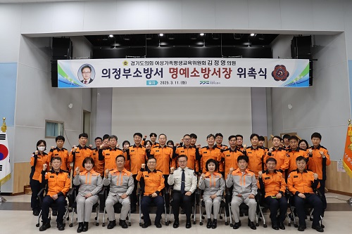 ÀÇÁ¤ºÎ¼Ò¹æ¼´Â 3¿ù 11ÀÏ 3Ãþ ´ëȸÀǽǿ¡¼ ¼Ò¹æ°ø¹«¿ø ¹× ÀÇ¿ë¼Ò¹æ´ëÀåÀÌ Âü¼®ÇÑ °¡¿îµ¥, °æ±âµµÀÇȸ ¿©¼º°¡Á·Æò»ý±³À°À§¿øÈ¸ ¼Ò¼Ó ±èÁ¤¿µ(±¹¹ÎÀÇÈû, ÀÇÁ¤ºÎ1) ÀÇ¿øÀ» ÀÇÁ¤ºÎ¼Ò¹æ¼ 1ÀÏ ¸í¿¹¼Ò¹æ¼ÀåÀ¸·Î À§ÃËÇß´Ù°í ¹àÇû´Ù.