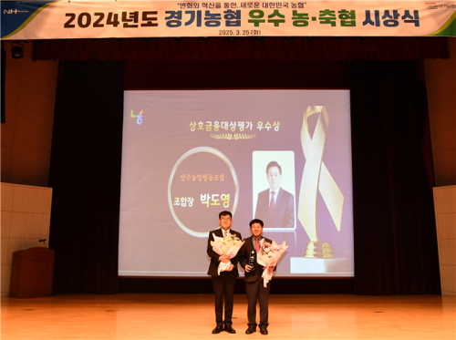 ¾çÁֽà ¾çÁÖ³óÇù(Á¶ÇÕÀå ¹Úµµ¿µ)ÀÌ 3¿ù25ÀÏ ¼ö¿ø½Ã ¼ÒÀç °æ±âµµ°æÁ¦°úÇÐÁøÈï¿ø °æ±âȦ¿¡¼ ³óÇùÁß¾Óȸ °æ±âÁö¿ªº»ºÎ(º»ºÎÀå ¾ö¹ü½Ä)°¡ ÁÖÃÖÇÑ ‘2024³â ¿ì¼ö ³ó·ÃàÇù ½Ã»ó½Ä’¿¡¼ »óÈ£±ÝÀ¶´ë»ó ¿ì¼ö»óÀ» ¼ö»óÇß´Ù.