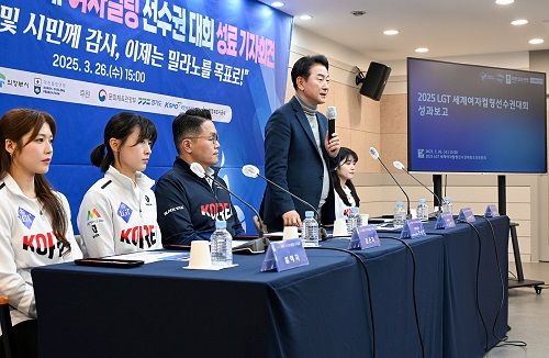 ÀÇÁ¤ºÎ½Ã(½ÃÀå ±èµ¿±Ù)´Â 3¿ù 26ÀÏ ½Ãû ÁßȸÀǽǿ¡¼ ‘2025 LGT ¼¼°è¿©ÀÚÄøµ¼±¼ö±Ç´ëȸ’ ¼º°úº¸°íȸ¸¦ ¿°í, ´ëȸÀÇ ¼º°øÀû °³ÃÖ¿Í ´ëÇѹα¹ ´ëÇ¥ÆÀÀÇ ¿ì¼öÇÑ ¼º°ú¸¦ °øÀ¯Çß´Ù.