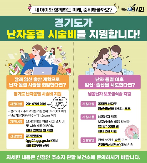 °æ±âµµ°¡ 4¿ùºÎÅÍ Àå·¡ ÀӽŷÃâ»êÀ» Èñ¸ÁÇÏ´Â µµ¹ÎÀÇ °¡ÀÓ·Â º¸Á¸À» À§ÇØ °áÈ¥À¯¹«¿Í »ó°ü¾øÀÌ ³ÀÚµ¿°á ½Ã¼úºñ¸¦ Áö¿øÇÑ´Ù.