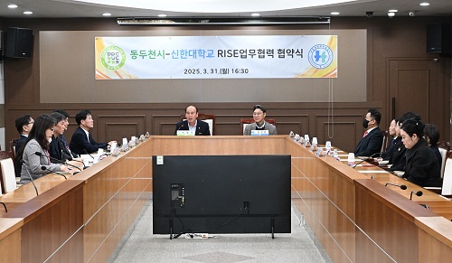 µ¿µÎõ½Ã(½ÃÀå ¹ÚÇü´ö)´Â 3¿ù 31ÀÏ ½Ãû »óȲ½Ç¿¡¼ ½ÅÇÑ´ëÇб³¿Í RISE(Áö¿ªÇõ½Å Á᫐ ´ëÇÐ Áö¿øÃ¼°è) »ç¾÷ ÃßÁøÀ» À§ÇÑ ¾÷¹«Çù¾àÀ» ü°áÇß´Ù.