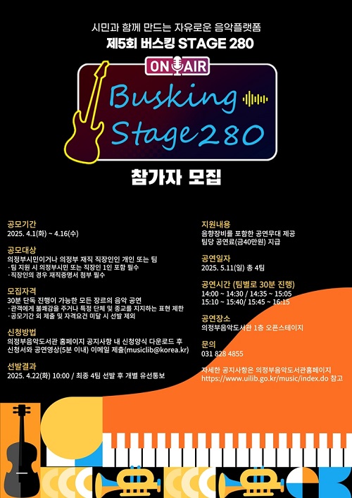 ÀÇÁ¤ºÎÀ½¾Çµµ¼°üÀº À½¾Ç¿¡ °ü½É ÀÖ´Â ½Ã¹Îµé¿¡°Ô ¹«´ë °æÇèÀ» Á¦°øÇϰí Áö¿ª À½¾ÇÀÎÀÇ ¼ºÀåÀ» Áö¿øÇϱâ À§ÇØ Á¦5ȸ ‘¹ö½ºÅ· Stage 280’À» °³ÃÖÇÑ´Ù.