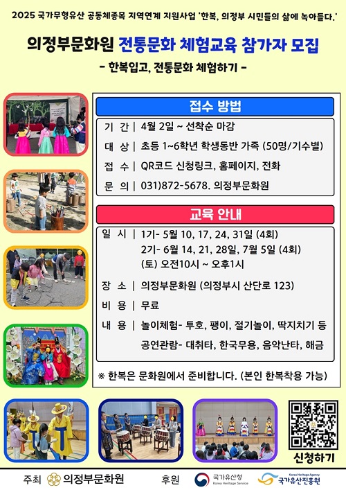 ÇöÀç ÃʵîÇлý °¡Á·À» ´ë»óÀ¸·Î Âü°¡ÀÚ¸¦ ¸ðÁý ÁßÀ̸ç, ÀÇÁ¤ºÎ¹®È¿ø ´©¸®Áý(https://www.ujbcc.or.kr) ¶Ç´Â Á¤º¸¹«´Ì(QRÄÚµå)¸¦ ÅëÇØ ½ÅûÇÒ ¼ö ÀÖ´Ù. ÀÚ¼¼ÇÑ »çÇ×Àº ÀÇÁ¤ºÎ¹®È¿ø(031-872-5678)¿¡¼ »ó´ã °¡´ÉÇÏ´Ù.