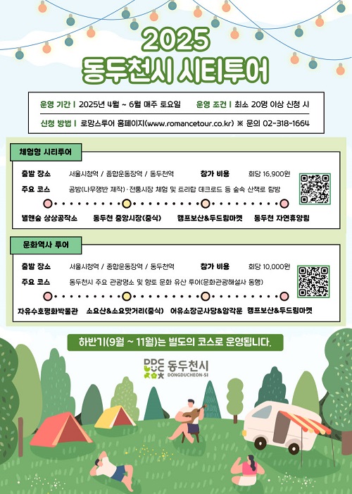µ¿µÎõ ½ÃƼÅõ¾î´Â ¼¿ï½Ãû¿ª, Á¾ÇտÀ忪, µ¿µÎõ¿ª µî¿¡¼ Ãâ¹ßÇϸç, ÃÖ¼Ò 20¸í ÀÌ»ó ½Åû ½Ã ¿î¿µµÈ´Ù. ½ÅûÀº ·Î¸Á½ºÅõ¾î °ø½Ä ȨÆäÀÌÁö(www.romancetour.co.kr)¸¦ ÅëÇØ °¡´ÉÇϸç, ÀÚ¼¼ÇÑ ¹®ÀÇ´Â 02-318-1664·Î ÇÏ¸é µÈ´Ù.